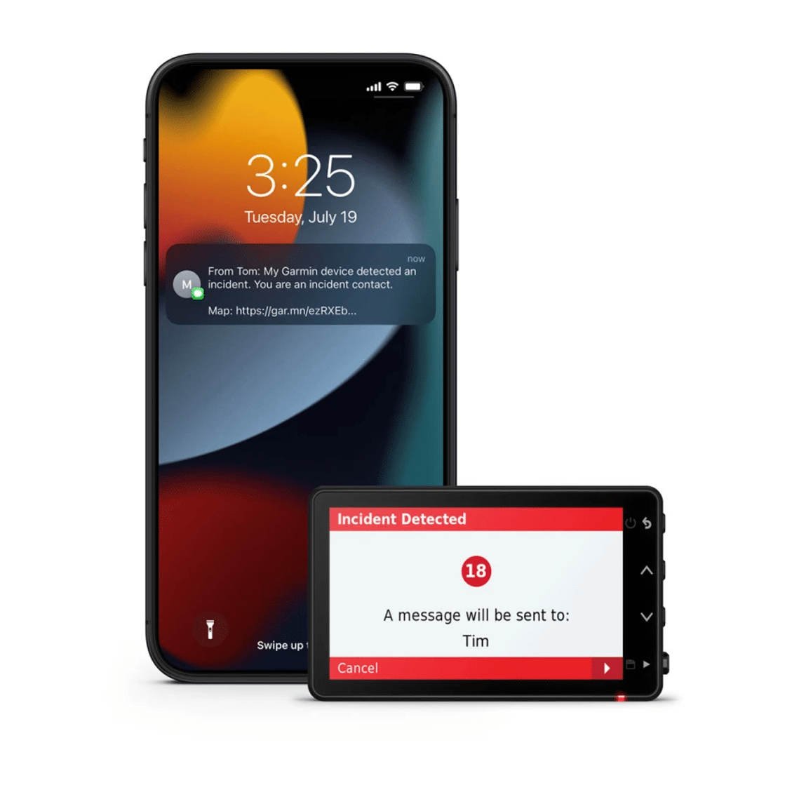 Melding naar contactpersoon voor noodgevallen, in het geval van een incident krijgt een vooraf ingestelde contactpersoon een melding over een ongeval.