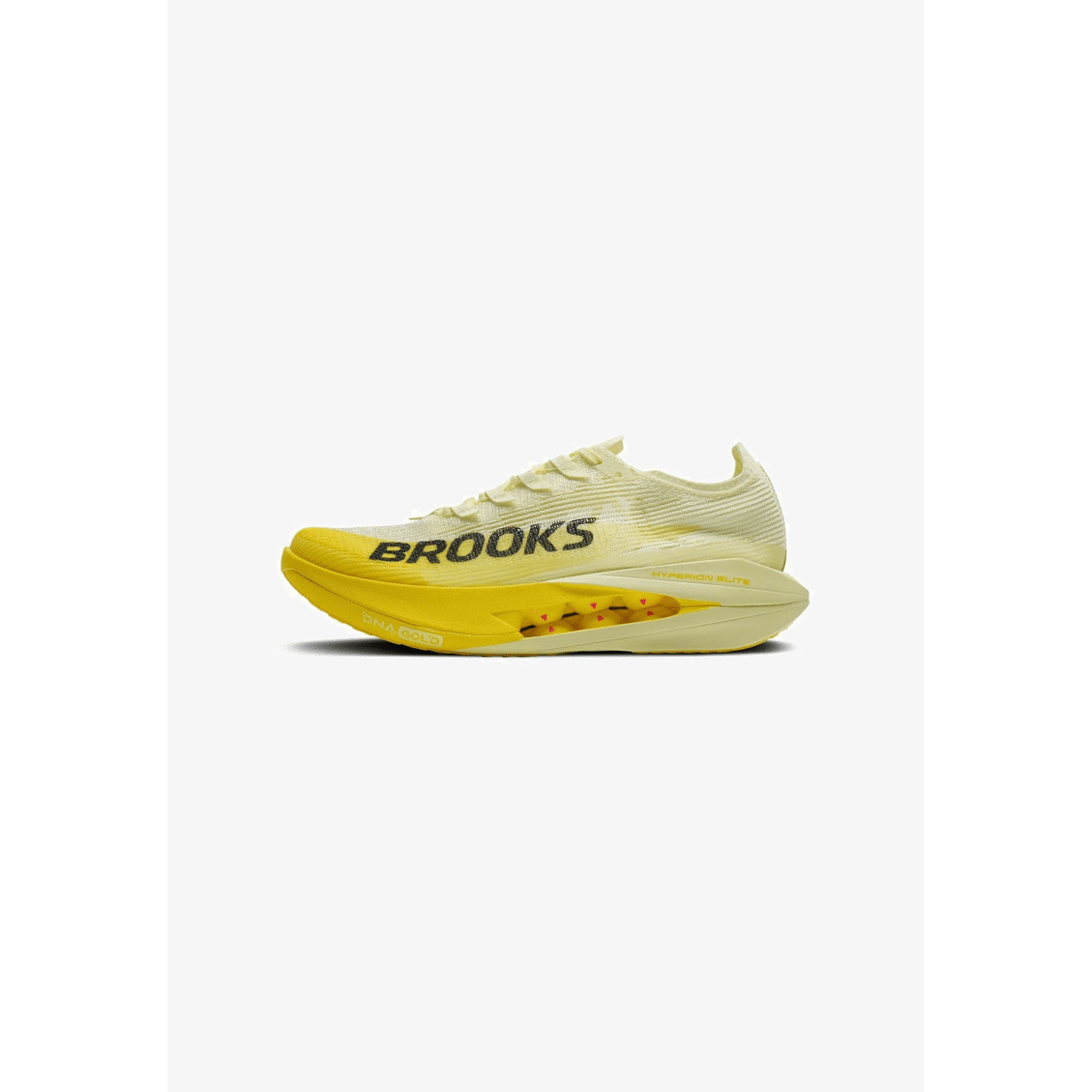 De schoen maakt gebruik van DNA Gold 100% PEBA foam, het lichtste en meest responsieve foam dat Brooks ooit heeft ontwikkeld. Dit materiaal levert uitzonderlijke demping en maximale energie-teruggave bij elke stap. Daarnaast bevat de tussenzool de SpeedVault Race Plate, een carbonplaat die zich over de volledige lengte van de schoen uitstrekt. Deze plaat is speciaal ontworpen om hardlopers te ondersteunen bij middellange en lange afstanden: hij stuwt je vooruit en zorgt voor krachtigere, efficiƫntere passen, waarbij de energie direct wordt omgezet in snelheid.